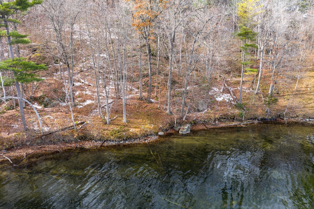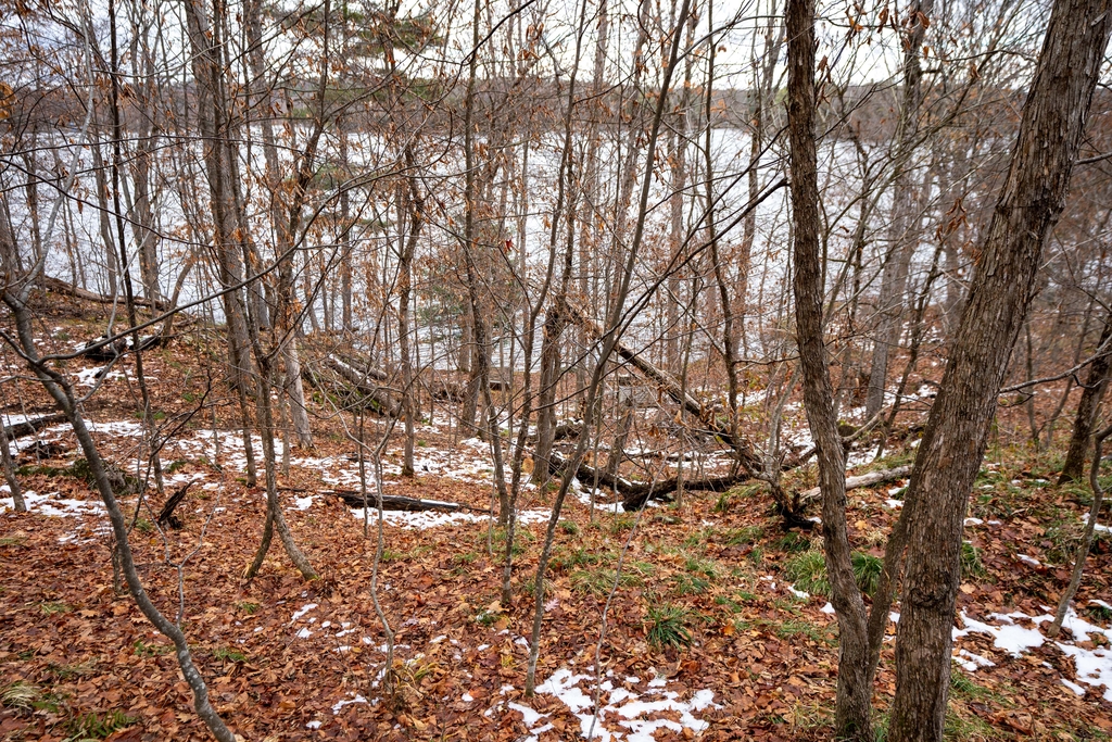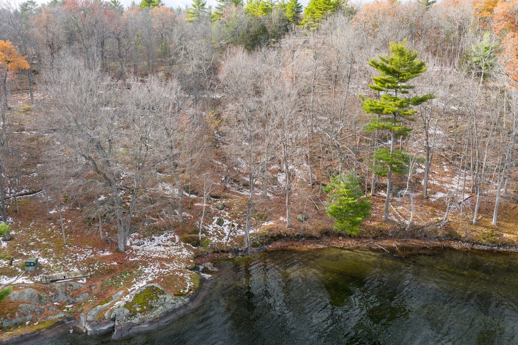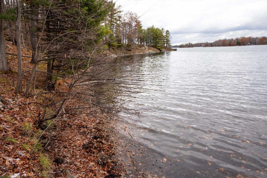 This southeast facing natural shoreline has level access and beautiful views across the lake. There is a potential building site in the middle of the lot surrounded by trees and set back from the water.
