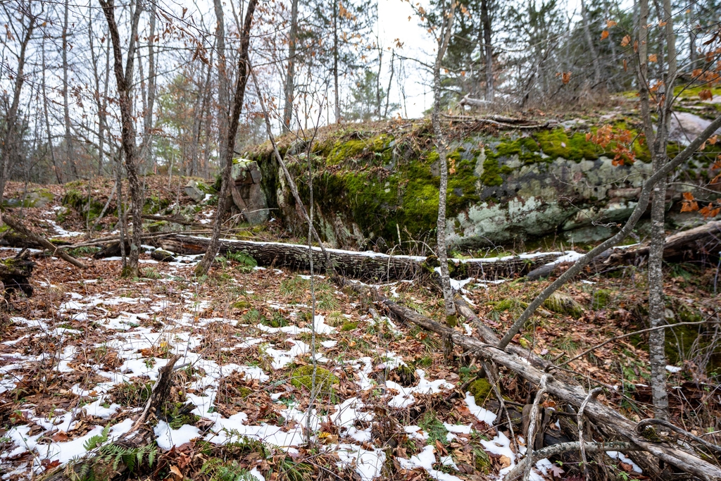 This heavily treed parcel of land has almost 5 acres of Canadian Shield terrain as well as rock outcroppings.
