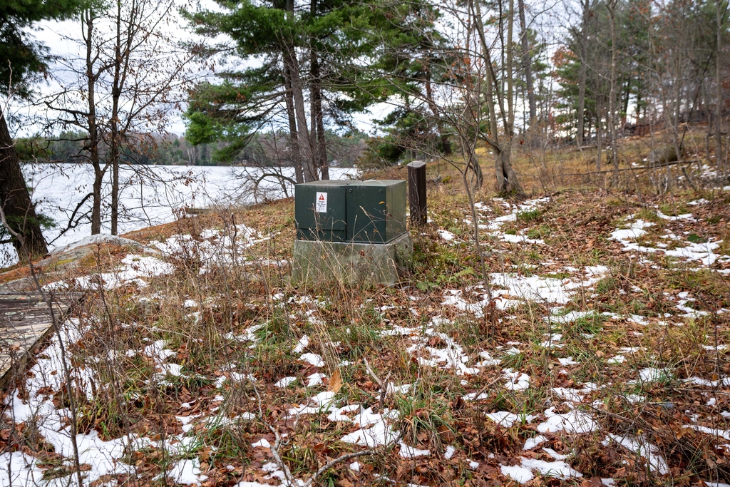 Gananoque Lake Lane runs through the property, so an open field and a mature tree section are located across the road. Hydro is also located right on the property.