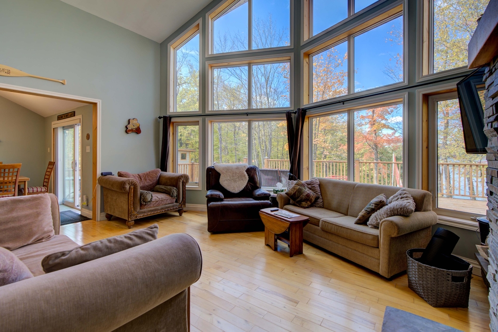 2 Camera Lights, Large grey couches & lazy boys in living room, Coffee tables in living room, All TVs, All personal items, Plates & cutlery, All contents of the garage, All contents of the bunkie, Outdoor furniture, Blackstone, Satellite internet, Kayaks, Boards, Boat and motor, Floating island, Outdoor cameras