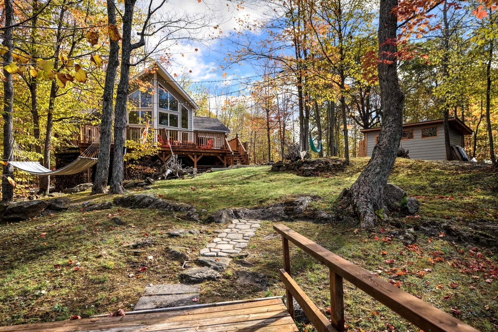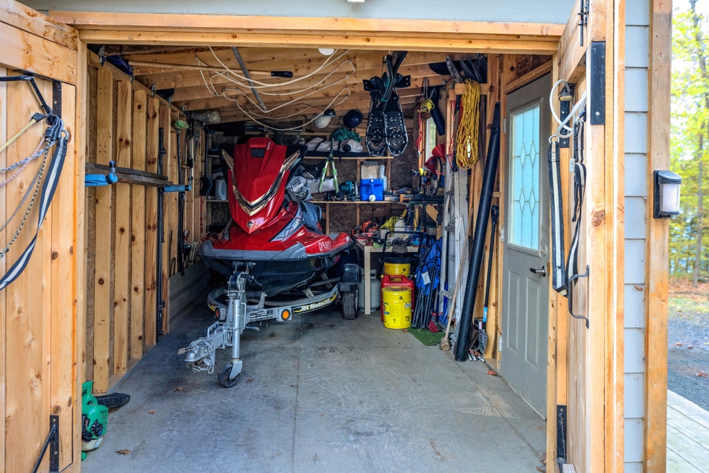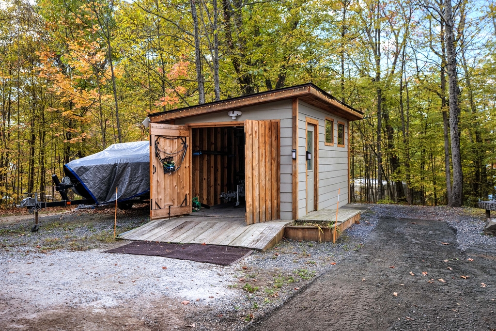 A storage shed/bunkie sits behind the house and there are two dock areas for your boats or water toys.