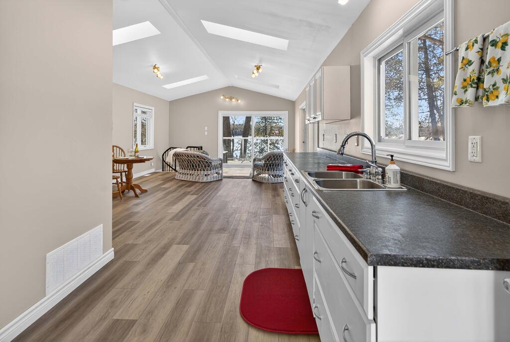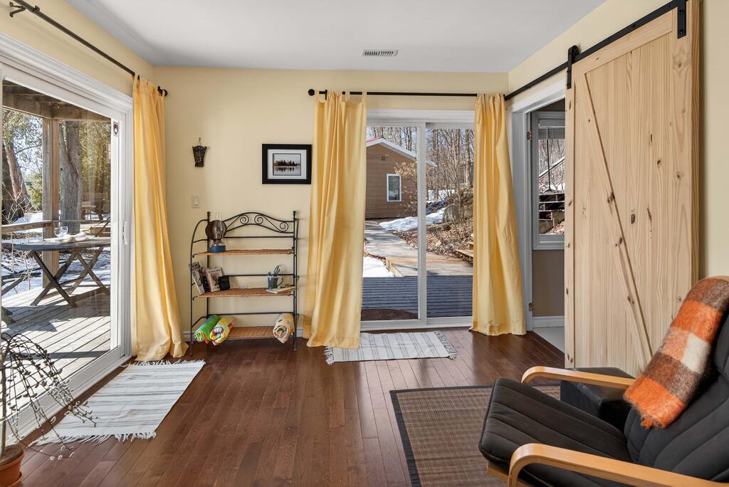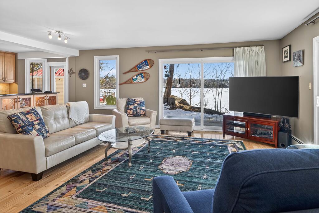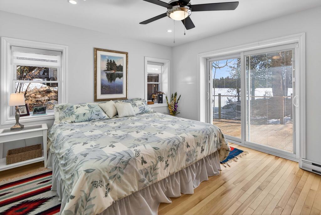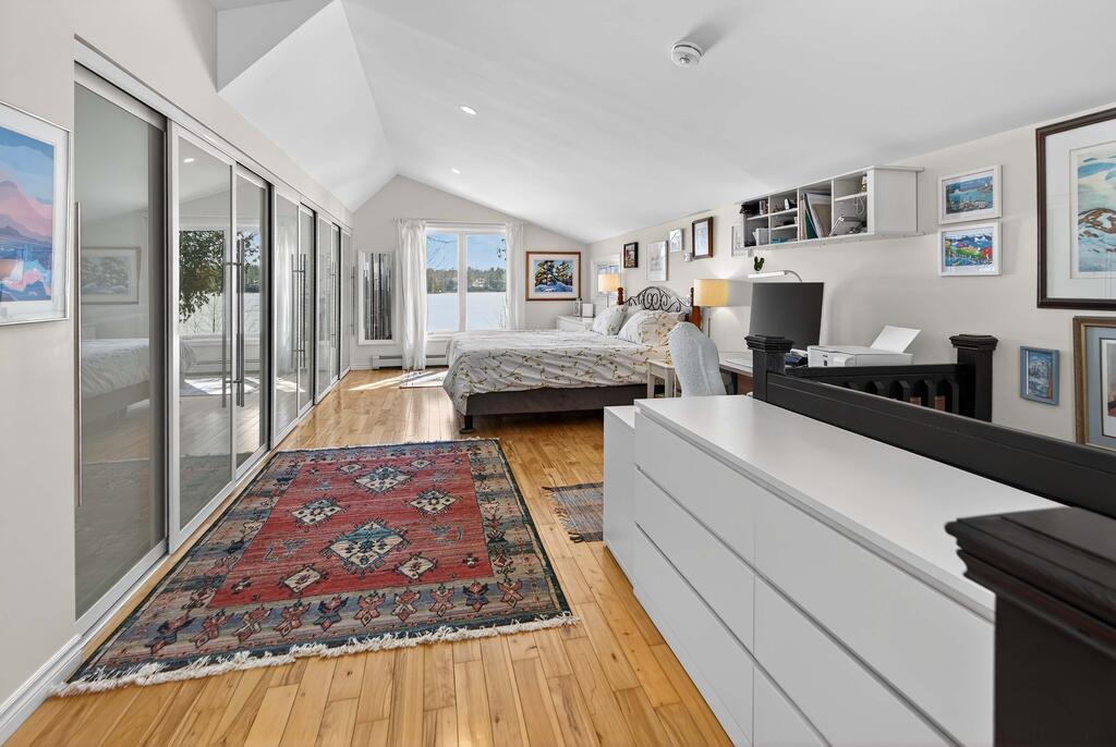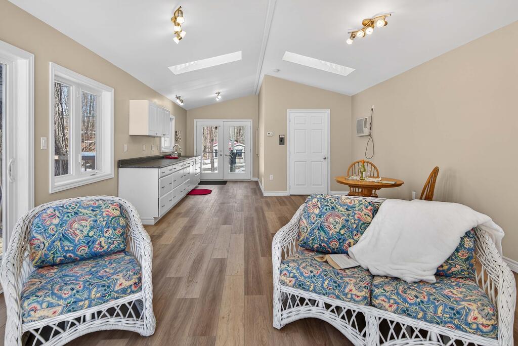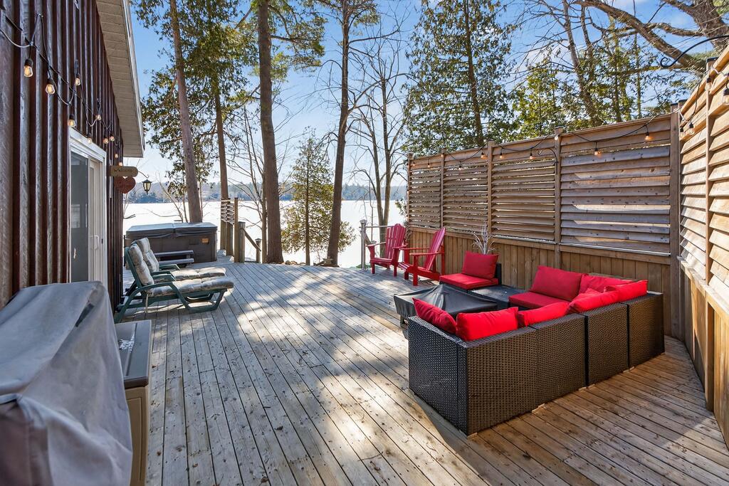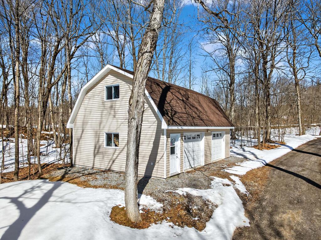 For additional space and flexibility, the property includes a fully separate guest cottage. This charming retreat offers a bedroom, a sitting area, a full bathroom, and an upper level with cabinetry, a kitchen sink, and access to a large deck overlooking the lake. This cottage is heated with a forced air propane furnace plus a wood stove and is serviced by the drilled well and septic system – all set for year-round use.