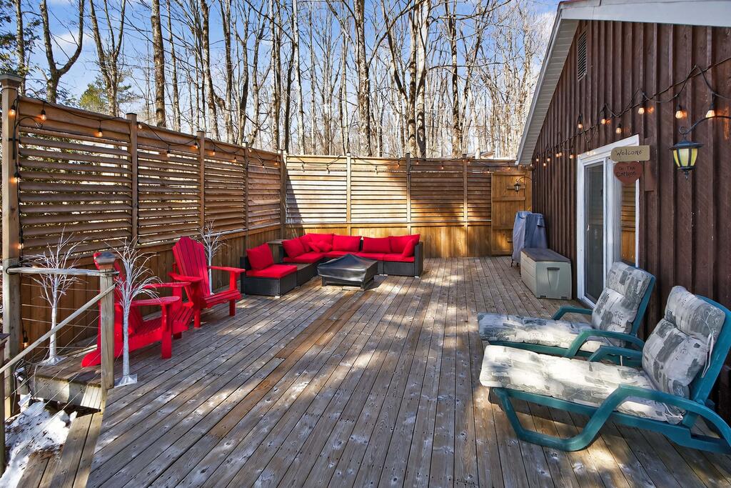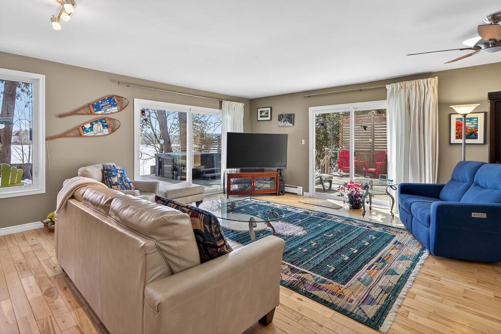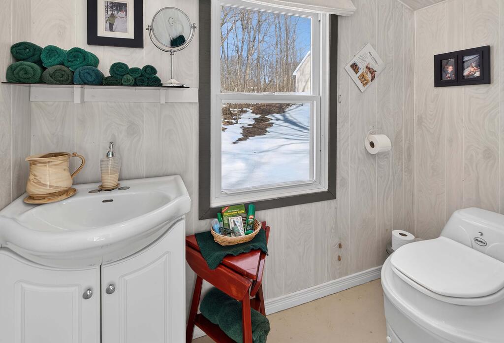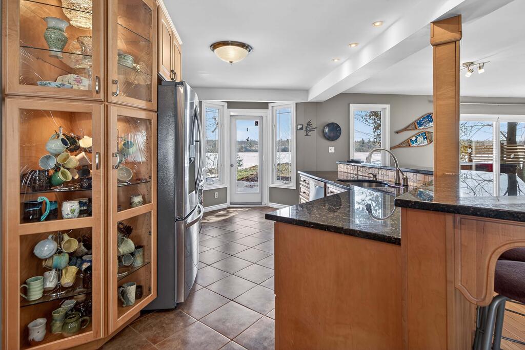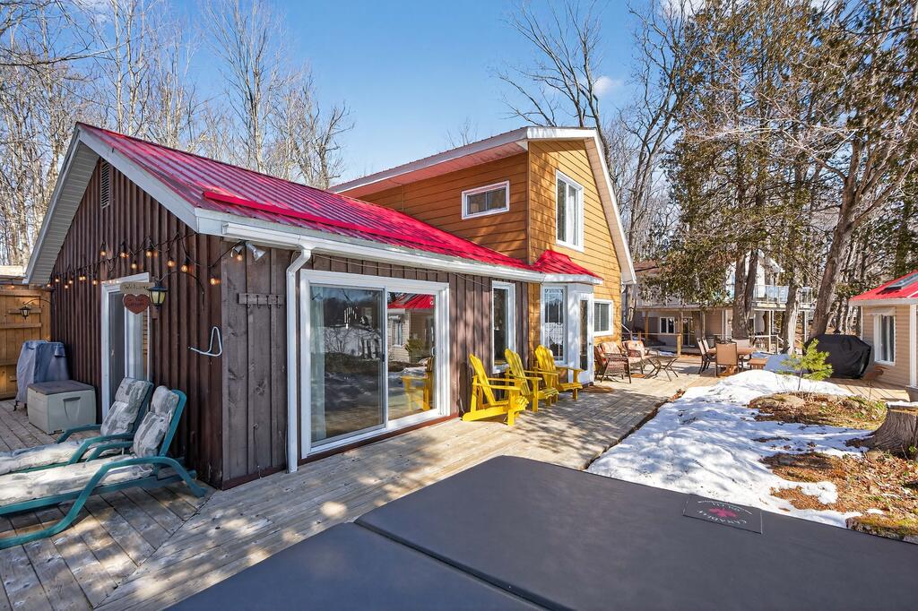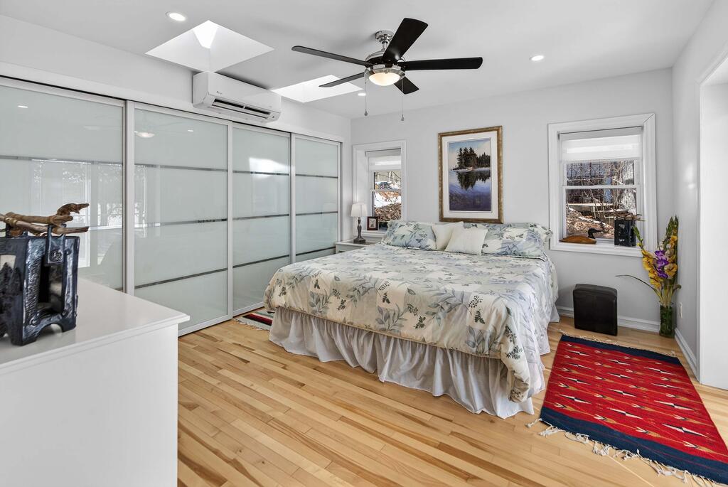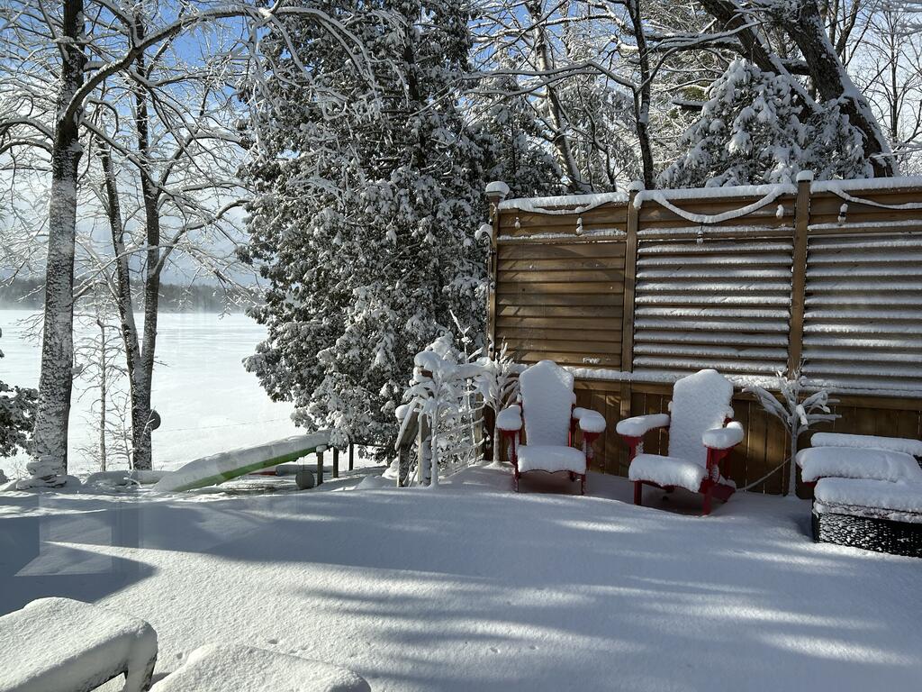 For additional space and flexibility, the property includes a fully separate guest cottage. This charming retreat offers a bedroom, a sitting area, a full bathroom, and an upper level with cabinetry, a kitchen sink, and access to a large deck overlooking the lake. This cottage is heated with a forced air propane furnace plus a wood stove and is serviced by the drilled well and septic system – all set for year-round use.