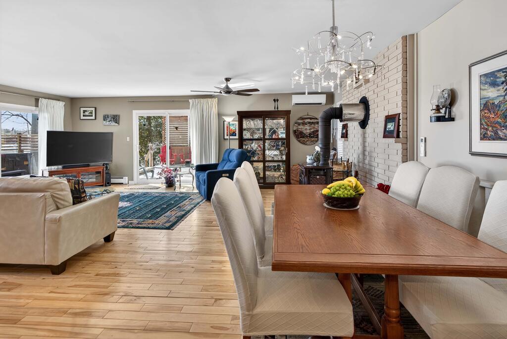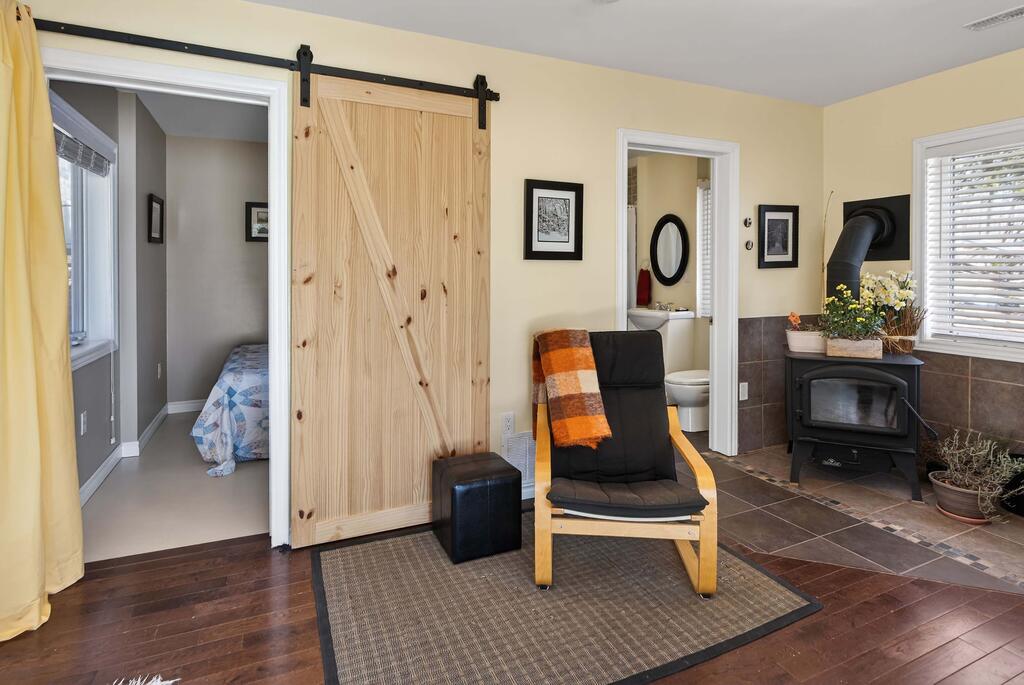 The main home features a bright, open-concept main floor ideal for entertaining family and friends. The well-appointed kitchen boasts ample storage, a large island, and elegant stone countertops. The inviting living room is perfect for relaxing – cozy up by the wood stove or step out onto the expansive, private wraparound deck. Also on the main floor are two bedrooms, a 4-piece bathroom complete with a jacuzzi tub, a laundry area, and a pantry-all finished with impressive attention to detail throughout. Upstairs, you will find the spacious primary bedroom along with a stunning 4-piece ensuite bathroom.