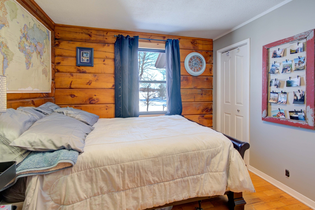 Full of rustic character that only a true log home can offer, this property features three bedrooms on the main level and an additional bedroom on the lower level.
