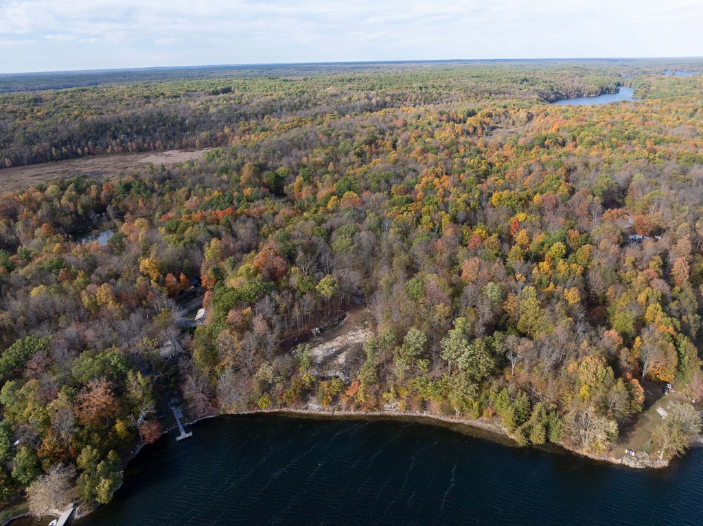Nicely treed waterfront lot with almost 10 acres of land and approximately feet of south facing shoreline.