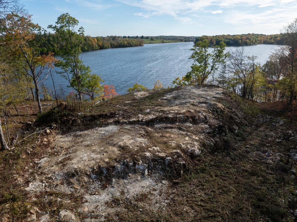 There is a large rock plateau that has been cleared off which would make a perfect walkout from a main floor while the lower cleared area is perfect for a walkout basement.